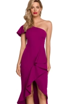 Sukienka koktajlowa na jedno ramię ołówkowa z rozcięciem różowa