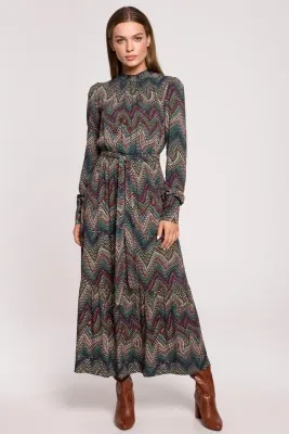 ( ilość produktów: 101 )Długa sukienka BOHO z falbankami i długim rękawem zielona