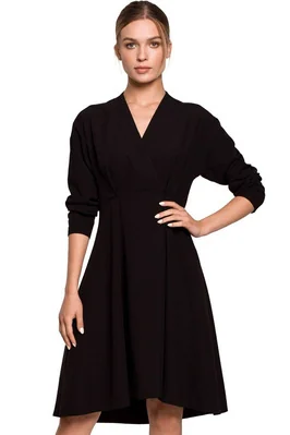 Sukienka boho rozkloszowana kopertowa midi z falbaną czarna