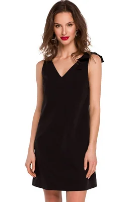 Sukienka trapezowa mini z dekoltem V na szerokich ramiączkach czarna