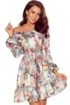 Sukienka z odkrytymi ramionami i wiązaniem szara hiszpanka w kwiaty