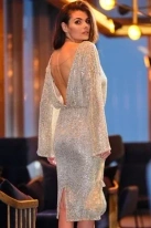 Wieczorowa sukienka cekinowa z dekoltem V z tyłu szampan