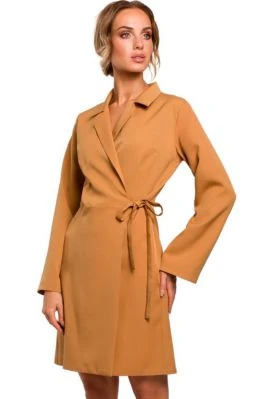 ( ilość produktów: 37 )Sukienka żakietowa kopertowa z kołnierzem wiązaniem brązowa