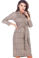 Sukienka żakietowa kopertowa z paskiem w talii pudrowy róż