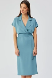 Elegancka sukienka marynarkowa z paskiem zielona