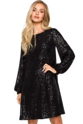 ( ilość produktów: 492 )Sukienka cekinowa trapezowa z paskiem błyszcząca czarna