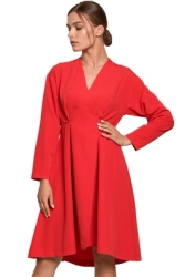 Elegancka sukienka rozkloszowana z dekoltem V czerwona
