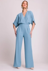 Elegancki kombinezon damski z kopertowym dekoltem błękitny