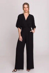 Elegancki kombinezon damski z kopertowym dekoltem czarny