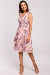 ( ilość produktów: 492 )Sukienka szyfonowa w kwiaty bez rękawów dekolt V różowa
