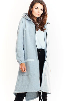 Elegancki długi kardigan z kapturem zielony
