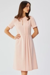 ( ilość produktów: 229 )Elegancka sukienka midi z ozdobnymi zakładkami pudrowy róż