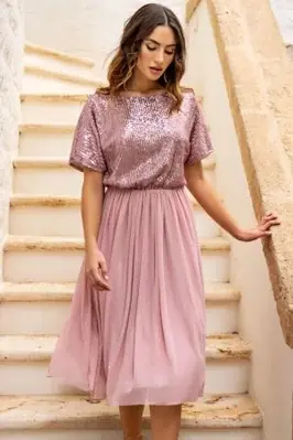 - Sukienka cekinowa midi w stylu vintage: Sukienki cekinowe w stylu vintage w fasonie midi mają wyjątkowy urok i mogą nadawać się na różne okazje, od retro imprez po świąteczne przyjęcia.