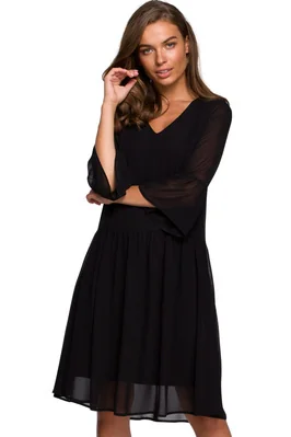 Sukienka wieczorowa szyfonowa rozkloszowana z falbaną czarna