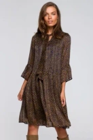 Sukienka w kwiaty szyfonowa z falbankami w stylu BOHO brązowa mini