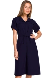 Sukienka koszulowa trapezowa granatowa szmizjerka z wiązaniem