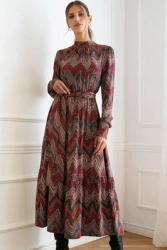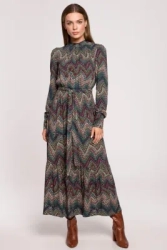 ( ilość produktów: 517 )Długa sukienka BOHO z falbankami i długim rękawem zielona