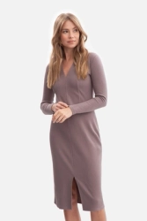 Bawełniana sukienka dzianinowa ołówkowa z dekoltem V kakao