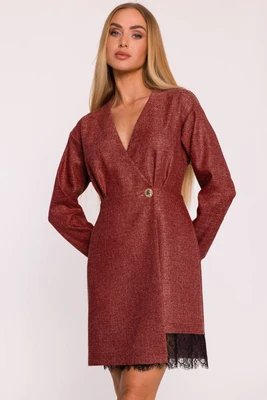 Elegancka sukienka tweedowa trapezowa kopertowa bordowa