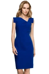 Elegancka sukienka ołówkowa asymetryczny dekolt niebieska