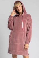 Welurowa sukienka kangurka z kapturem bawełniana pudrowy róż