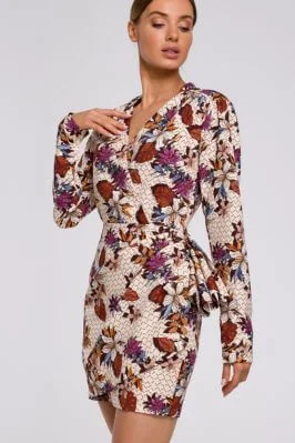 ( ilość produktów: 173 )Elegancka sukienka z drapowaniem dekoltem V i nadrukiem