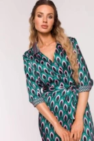 Sukienka szyfonowa w kwiaty z wycięciami na ramionach zielona