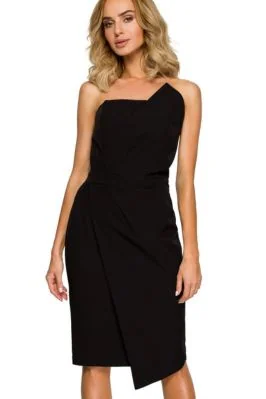 ( ilość produktów: 116 )Elegancka sukienka trapezowa z kontrafałdą wizytowa granatowa