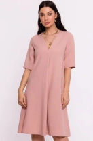 Swobodna sukienka z kołnierzykiem guzikami i kieszeniami róż