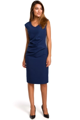 Sukienka ołówkowa kimonowa z bufiastymi rękawami granatowa