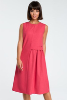 Lniana sukienka trapezowa na lato bez rękawów z marszczeniem różowa