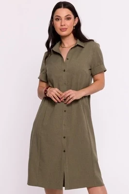 Sukienka koszulowa midi z kołnierzykiem zielona