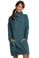 Dzianinowa sukienka z golfem i dużymi kieszeniami bawełniana zielona