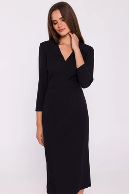 - Sukienka kopertowa: Z dekoltem w literę V, zapinana na pas. Wycięcie dodaje klasy i elegancji. Doskonała na spotkania biznesowe, rozmowy rekrutacyjne czy oficjalne obiady.