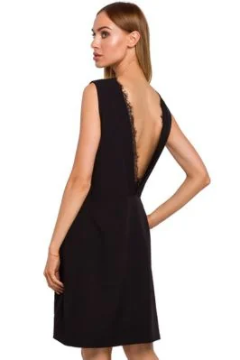 Sukienka o prostym fasonie z dekoltem na plecach czarny
