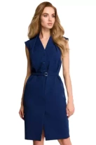 Sukienka koszulowa szmizjerka midi bez rękawów z paskiem granatowa