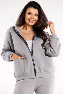 Bluza damska oversize długa z kieszenią kangurka szara