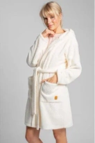 Puszysty pluszowy szlafroczek z kapturem ecru