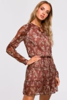 Sukienka w kwiaty szyfonowa z falbankami w stylu BOHO brązowa mini