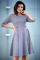 Elegancka sukienka rozkloszowana z ozdobnymi guzikami pepitka