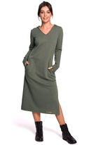 Sukienka trapezowa z dekoltem V bawełniana czarna dzianina