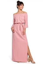 Długa sukienka hiszpanka na lato bawełna pudrowy róż