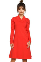 Sukienka trapezowa z dekoltem V bawełniana czerwona dzianina