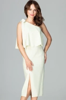 Koktajlowa ołówkowa sukienka na jedno ramię z falbaną żółta