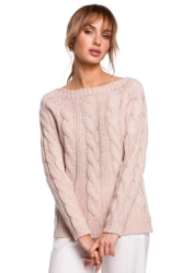 Sweter damski ze splotem typu warkocz pudrowy róż