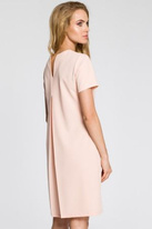 Sukienka trapezowa z kontrafałdą i dekoltem z tyłu na lato pudrowy róż