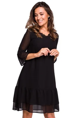 Sukienka elegancka ołówkowa kimonowa z bufiastymi rękawami granatowa