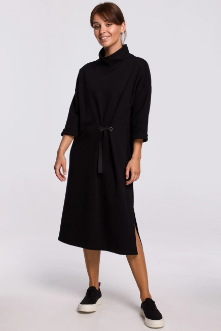 Ciepła czarna sukienka bawełniana oversize z golfem na chłodniejsze dni