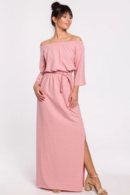 Długa sukienka bawełniana z odkrytymi ramionami różowa hiszpanka: