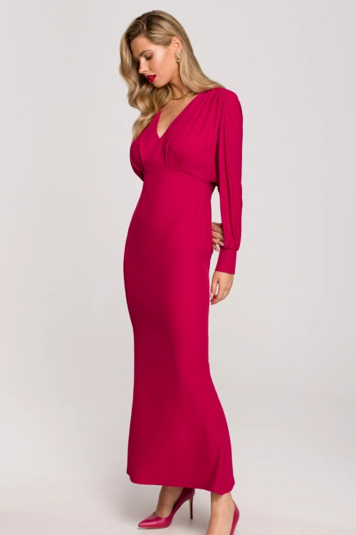 Sukienka wieczorowa maxi z długimi, bufiastymi rękawami: